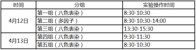 *注:八色表染均為相同實驗內(nèi)容,請根據(jù)自己的時間選擇不同時間段的實驗。