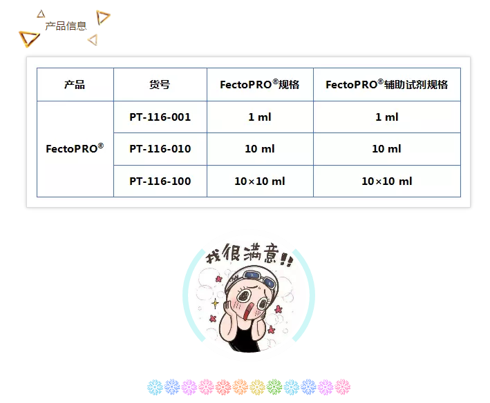 FectoPRO?采用嚴(yán)格管控的生產(chǎn)流程進(jìn)行生產(chǎn)和配置,確保各實(shí)驗(yàn)結(jié)果的高度可重復(fù)性。此外,為了符合現(xiàn)行的監(jiān)管準(zhǔn)則,F(xiàn)ectoPRO?還采用了先進(jìn)的質(zhì)控流程,包括確保批次間的蛋白質(zhì)生產(chǎn)率有絕佳一致性的質(zhì)量指標(biāo)。