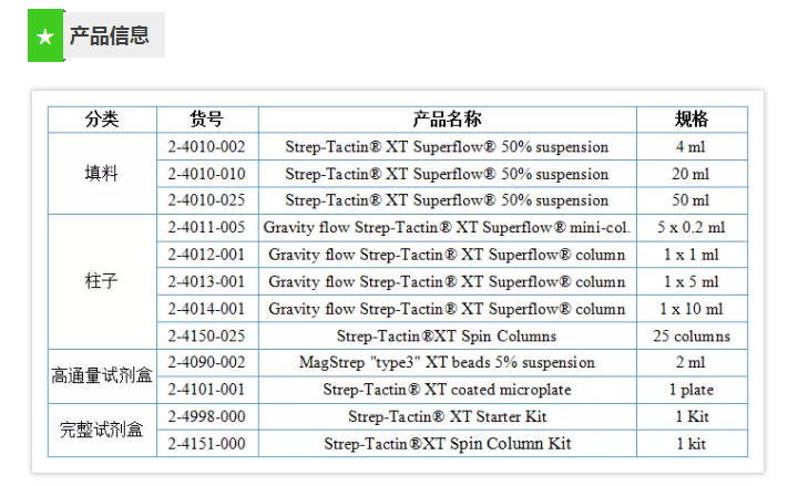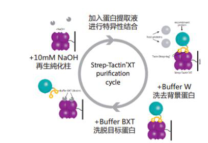 Strep-tag?是IBA life sciences基于生物素(Biotin)和鏈霉親和素(Streptavidin)之間的結(jié)合反應(yīng)開發(fā)的蛋白純化系統(tǒng)。第三代Strep-tag?系統(tǒng):「Strep-Tactin?XT:Twin-Strep-tag?」蛋白純化系統(tǒng),其結(jié)合力可達pM級別但仍保持結(jié)合的可逆性和固定化蛋白的溫和復(fù)蘇能力。因此,用Strep-Tactin?XT 系統(tǒng)能有效提高您目標蛋白的純度,解決您實驗中所遇到的常見問題。