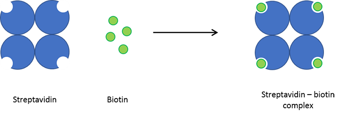 這對具有高親和力的蛋白常被偶聯(lián)到抗體或蛋白,其中biotin常被偶聯(lián)到抗體或配體,streptavidin偶聯(lián)標記物如熒光素、HRP或AP、NanoGold等,如此通過Biotin—Streptavidin橋連來可實現(xiàn)間接檢測靶標。