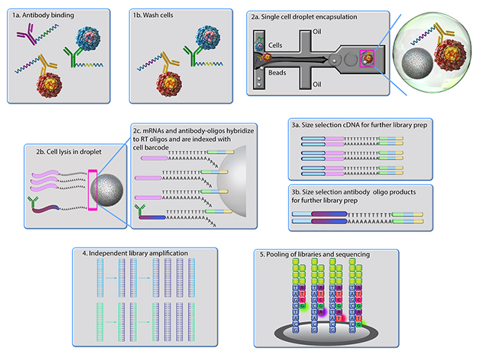 • 在單細(xì)胞平臺中連同Antibody-Derived Tags(ADT, 寡核苷酸偶聯(lián)抗體)擴增;