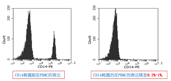 例2:pluriSpin? Human MonocyteDepletionCat#19-01002-31),耗竭之后單核細(xì)胞在PBMC的表達(dá)降至0.2%-1%.: