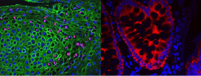 2.AMCA:常用在多標(biāo)記實(shí)驗(yàn)中,如免疫熒光、流式細(xì)胞術(shù)。其缺點(diǎn)是,淬滅快,且由于肉眼不能很好的檢測(cè)其所激發(fā)的藍(lán)色熒光,因而AMCA耦聯(lián)的二抗更適用于檢測(cè)大量存在的抗原。