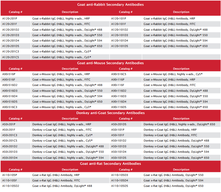 Bethyl優(yōu)質(zhì)二抗舉例: