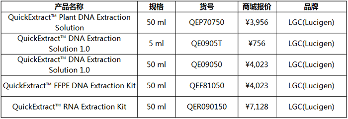 QuickExtract? Plant DNA Extraction Solution已成功地用于從擬南芥,玉米,胡椒,大豆,斯佩耳特小麥和菠菜葉中提取DNA。 提取液體積為50 mL,足以進(jìn)行500次(100μL/次)提取。