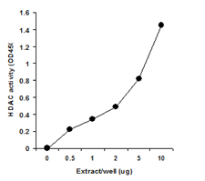 圖1.從MCF-7細(xì)胞中制備核提取物,并測定不同量的提取物中HDAC的活性, 結(jié)果顯示該試劑盒具有高特異性