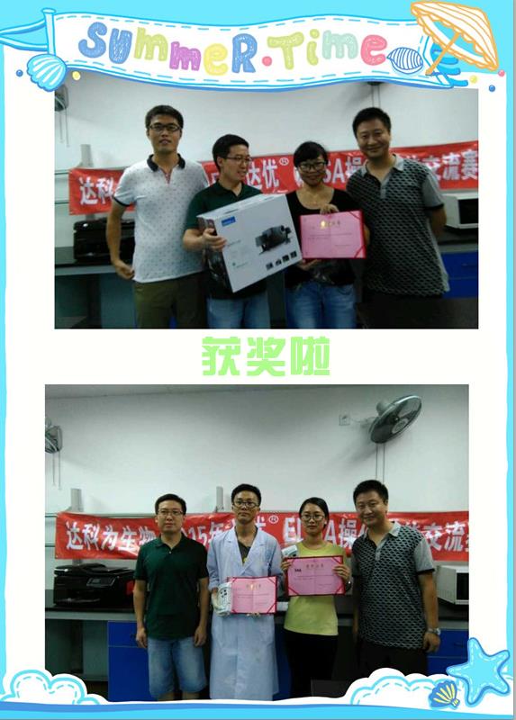 上午9點(diǎn)半正式開始,先是由相關(guān)人員講解比賽的注意事項(xiàng)及評(píng)分標(biāo)準(zhǔn),然后參賽人員開始正常操作比賽。這次參賽的人員有來自彭濤課題組、黃俊課題組的學(xué)生以及研究所的技術(shù)人員。此次參賽的大部分人員由于都有一定的ELISA實(shí)驗(yàn)基礎(chǔ),因此比賽的流程進(jìn)行地比較順暢,其中有一位同學(xué)接下來的課題剛好需要用到ELISA檢測(cè),他說通過這次的交流賽,也是為接下來的實(shí)驗(yàn)?zāi)M操作,能夠幫助自己發(fā)現(xiàn)實(shí)驗(yàn)操作中的不足和漏洞,收獲頗豐。并且還說今后購(gòu)買試劑盒會(huì)優(yōu)先考慮我們達(dá)優(yōu)?試劑盒的。免疫所的老師不僅幫我們監(jiān)督評(píng)分還幫我們頒獎(jiǎng),還介紹說這次所里的有些學(xué)生暑假回家了,人數(shù)比較少,不然這是一個(gè)很好的交流機(jī)會(huì),同時(shí)也希望我們以后還有更多這樣的實(shí)驗(yàn)技能交流賽。