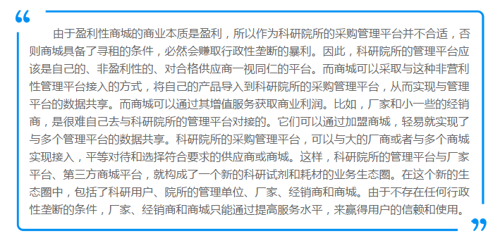 單位沒有自己出資搭建平臺,而是使用已經(jīng)存在的商業(yè)化采購平臺,所有權也不屬于單位,服務器也沒有在本單位,同時與其它多家單位共享平臺的使用。這種模式,我們稱之為第三方商城平臺。 這樣的平臺開始只在中科院系統(tǒng)出現(xiàn),現(xiàn)在已經(jīng)開始在其它大學里采用。