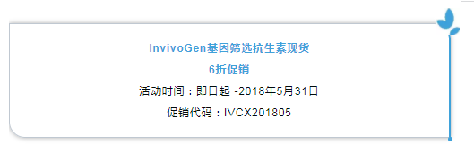 達(dá)科為生物是InvivoGen公司在中國的一級代理,并且和InvivoGen一直都有良好的合作,達(dá)科為準(zhǔn)備了大量InvivoGen篩選抗生素現(xiàn)貨,即日起篩選抗生素下列現(xiàn)貨參加6折促銷活動(dòng):
