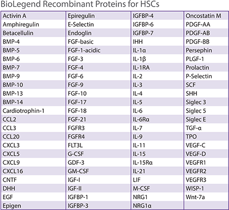 BioLegend提供多種重組蛋白,可幫助維持胚胎干細胞、誘導多能干細胞、造血干細胞、間充質(zhì)干細胞和神經(jīng)干細胞的多能性或誘導它們分化。下面我們一起了解一下重組蛋白在幾種干細胞中的應用。